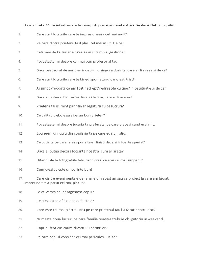 50 De Intrebări Pentru A ți Cunoaște Mai Bine Copilul Blog In Tandem