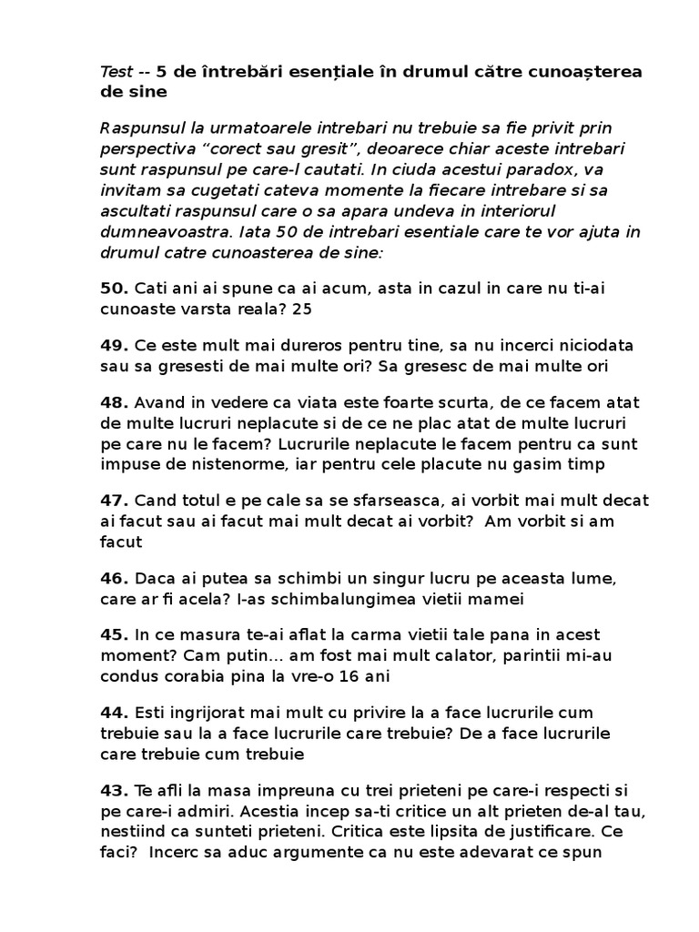 Test Psih 50 De ăntrebări Esențiale Către Cunoașterea De Sine