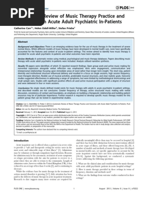 A Systematic Review Of Music Therapy Practice And Outcomes With