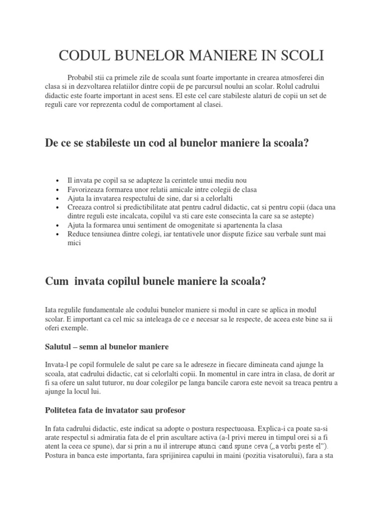 Codul Bunelor Maniere In Scoli Docx