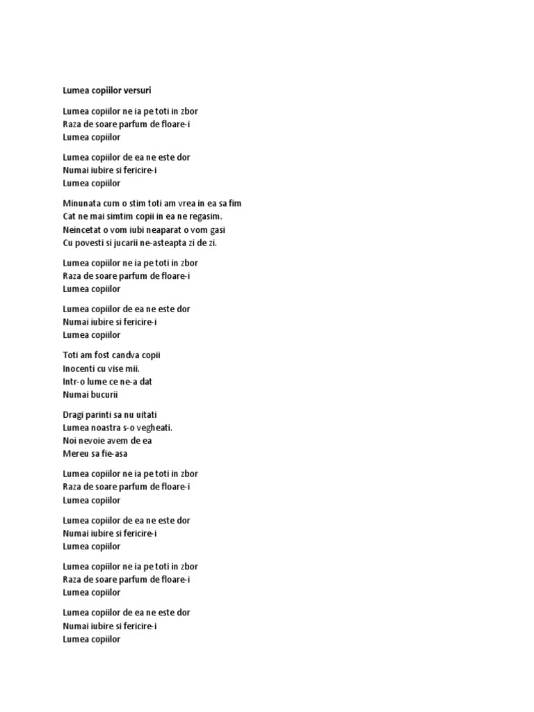 Lumea Copiilor Versuri Poezii Si Cantecele