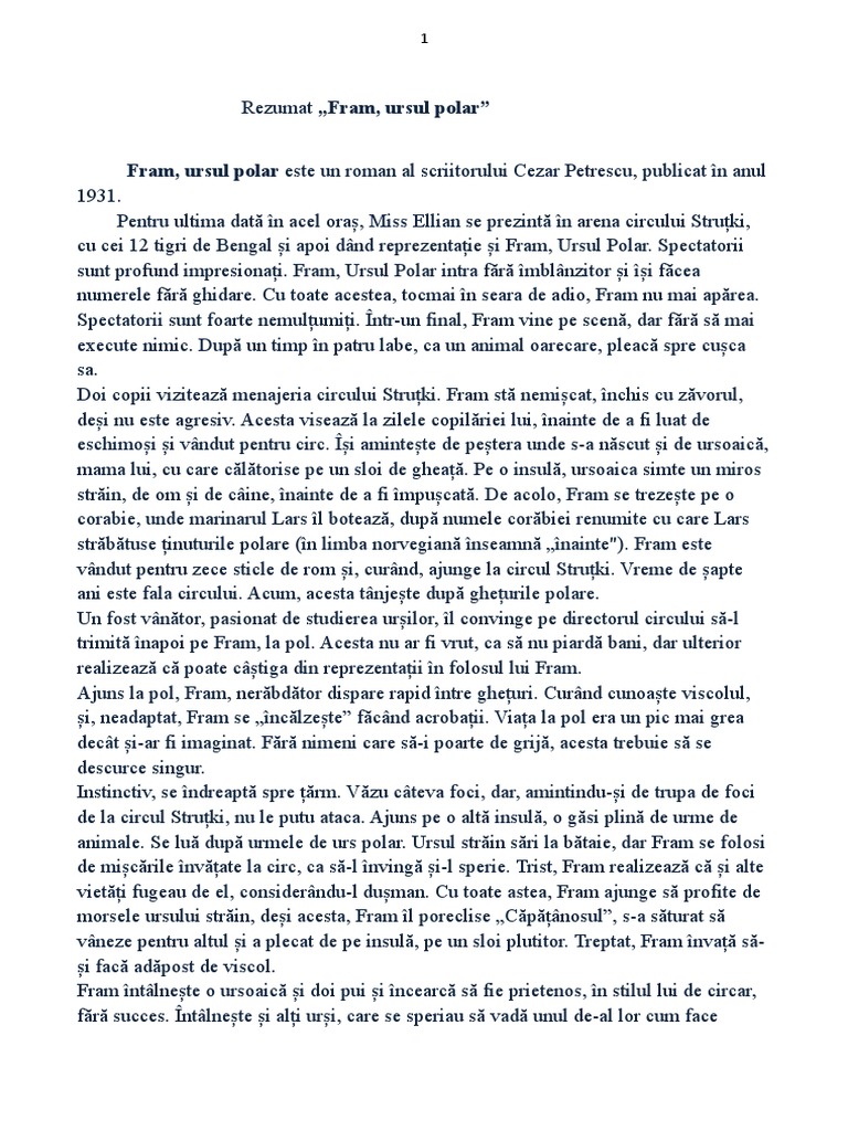 Imi Puteti Scrie Un Rezumat Pentru Fram Ursul Polar Va Rog