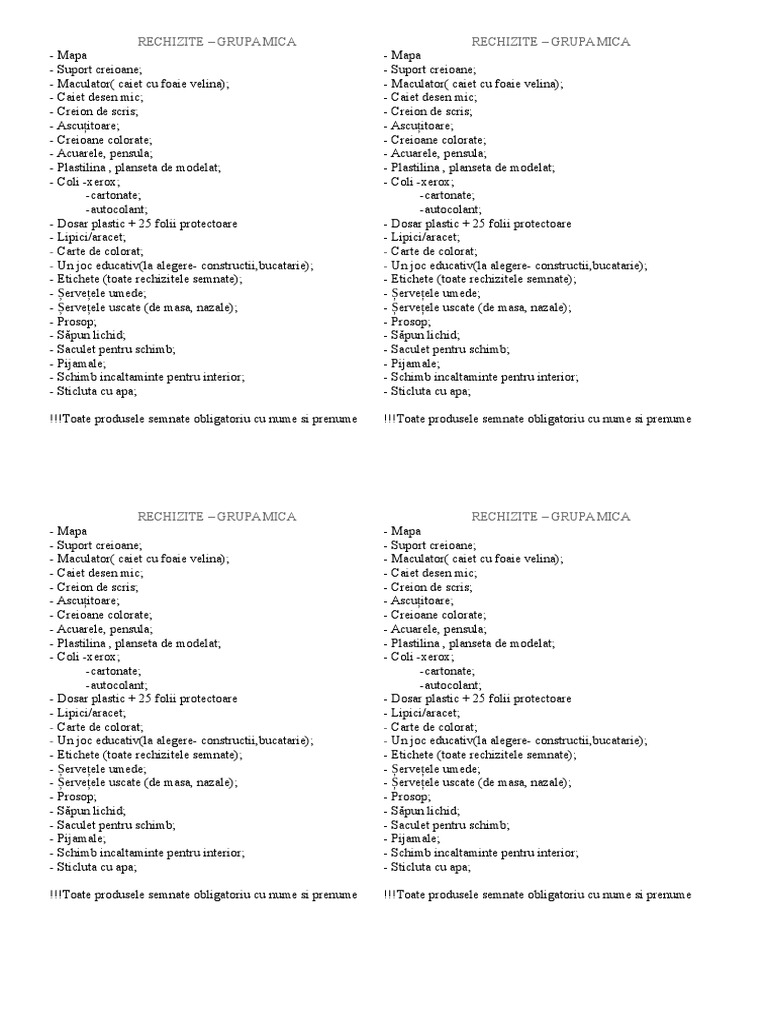 Lista Rechizite Grupa Mare Pregatitoare