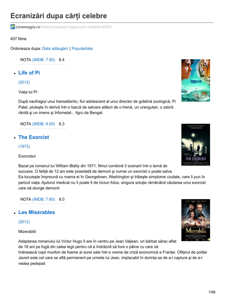 Cinemagia Ro Ecranizări După Cărţi Celebre