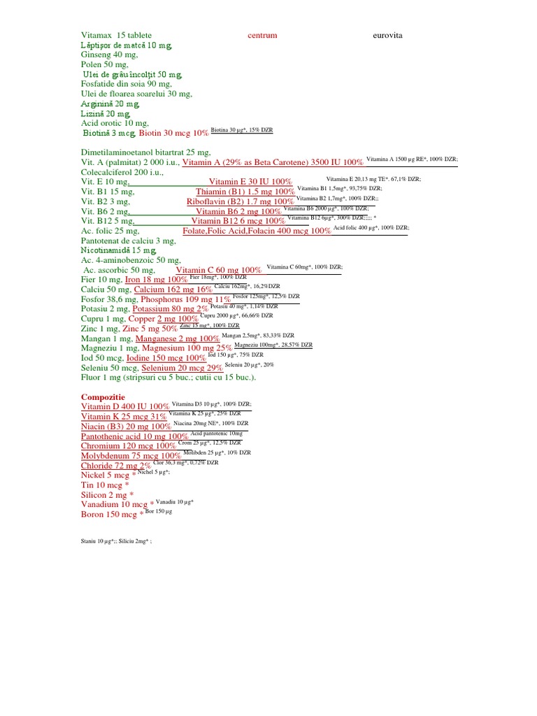 Vitamax 15 Tablete Centrum Eurovita Docx