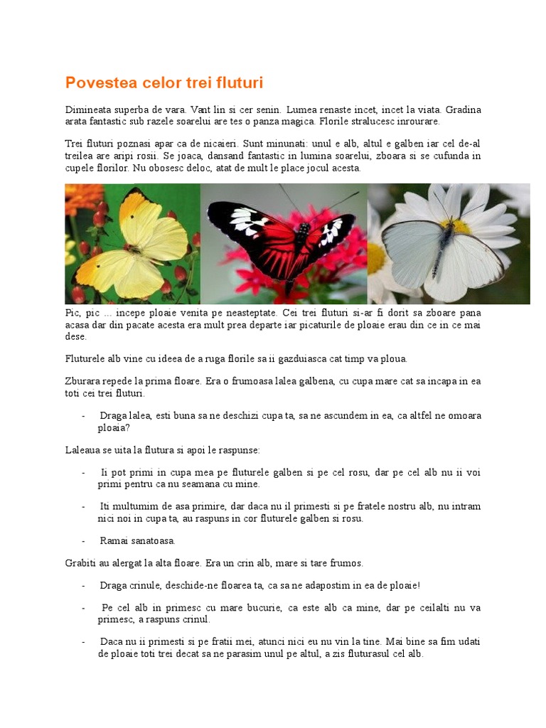 Povestea Celor Trei Fluturi Imagini Materiale Didactice