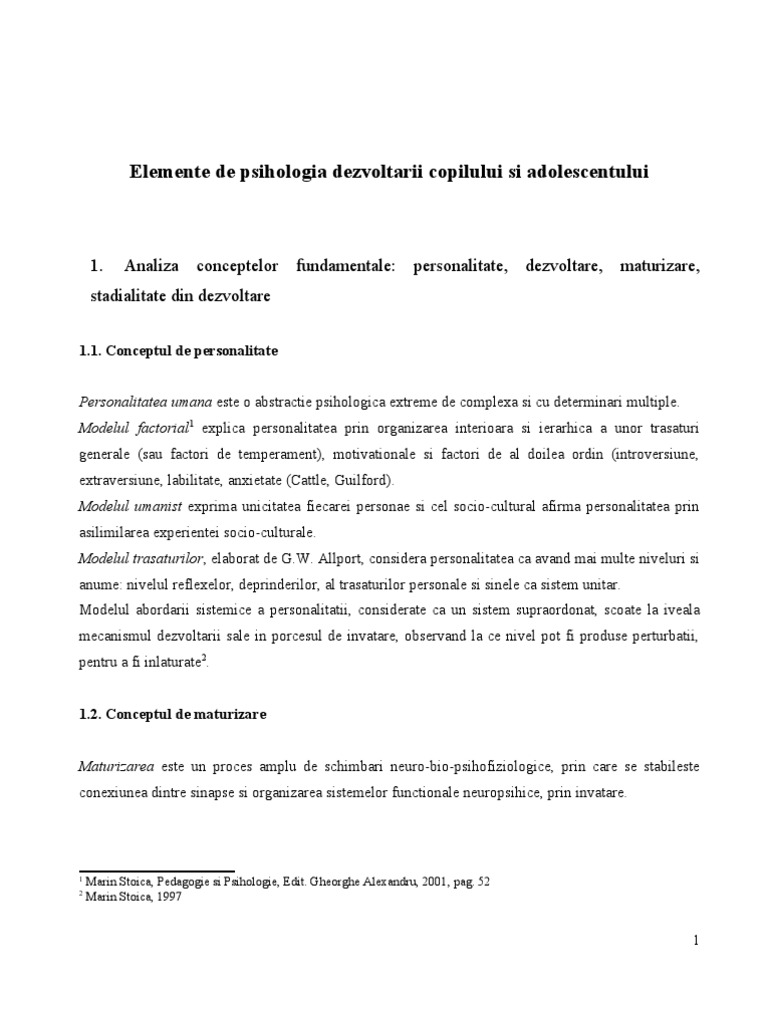 Elemente De Psihologia Dezvoltarii Copilului Si Adolescentului