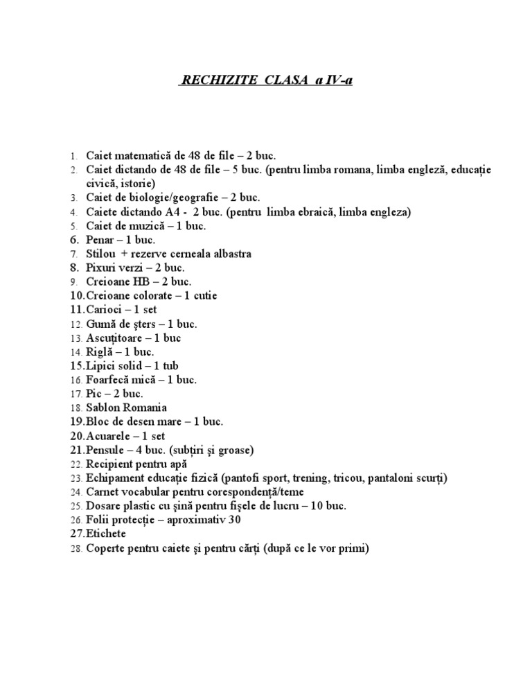 Rechizite Clasa A Iv A 1
