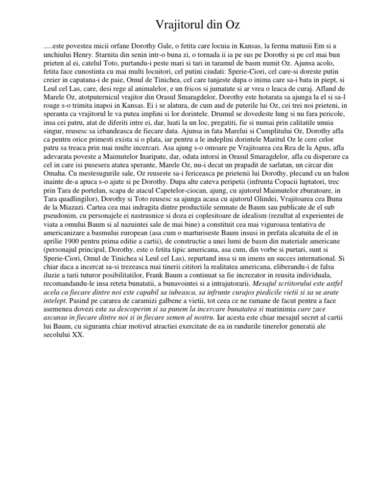 Rezumat La Textul Vrajitorul Din Oz Urgent Va Rog Brainly Ro